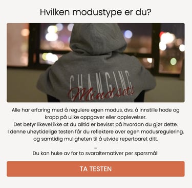 Hvordan skal vi kunne yte optimalt som profesjonelle hjelpere? En ting er å ha den rette kunnskapen (perspektiv) og de rette ferdighetene (praksis). Men hva med de gangene vi ikke klarer å innstille oss på en situasjon (modus), og merker at hode og kropp ikke er klar for den utfordringen vi har foran oss? Det kan f.eks. dreie seg om noe så enkelt og vanskelig som å lytte til et annet menneske: Om vi ikke er i lyttemodus, så holder det ikke med kunnskap og ferdigheter i lytting.